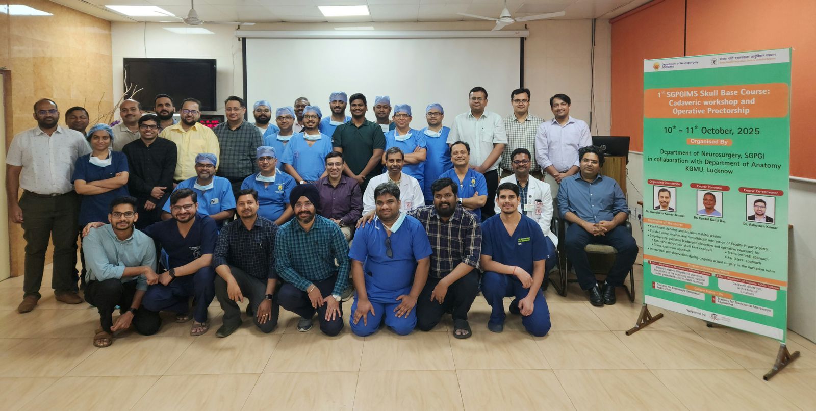 The Department of Neurosurgery, Sanjay Gandhi Postgraduate Institute of Medical Sciences (SGPGIMS), Lucknow, in collaboration with the Department of Anatomy, King George’s Medical University (KGMU), successfully conducted the 1st SGPGI Skull Base Course – Cadaveric Workshop and Operative Proctorship on October 10–11, 2025.