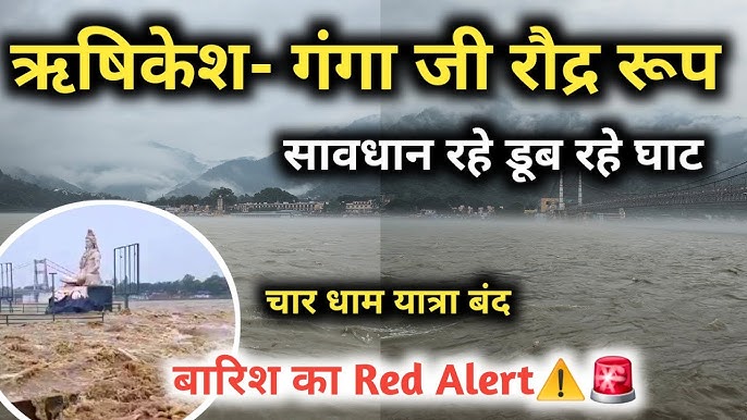 ऋषिकेश में गंगा उफान पर चेतावनी ।